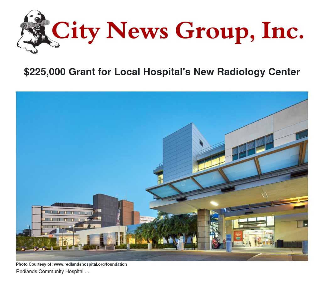 Stater Bros. Charities and the Inland Women Fighting Cancer have awarded a $225,000 grant to Redlands Community Hospital (RCH) for the construction of its new Laura and Jack Dangermond Center for Radiation Therapy.
