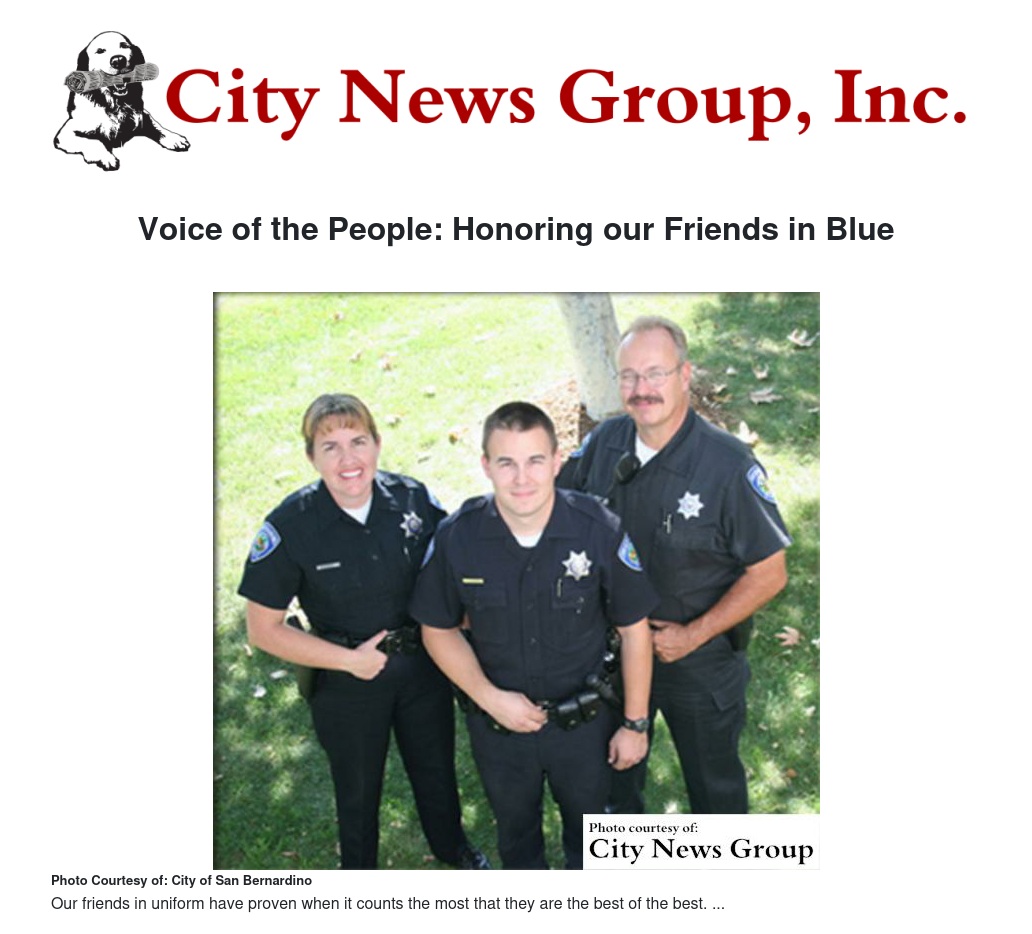 If we really believe in honoring our friends in blue, then we need to Dec. 2, 2015 San Bernardino County begin to show it. It is time that we properly thanked our brave men and women in law enforcement for serving and protecting the people of this great county.