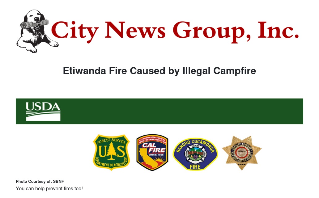 Investigators have determined that the 2,190 acre Etiwanda Fire was started by an escaped illegal campfire.