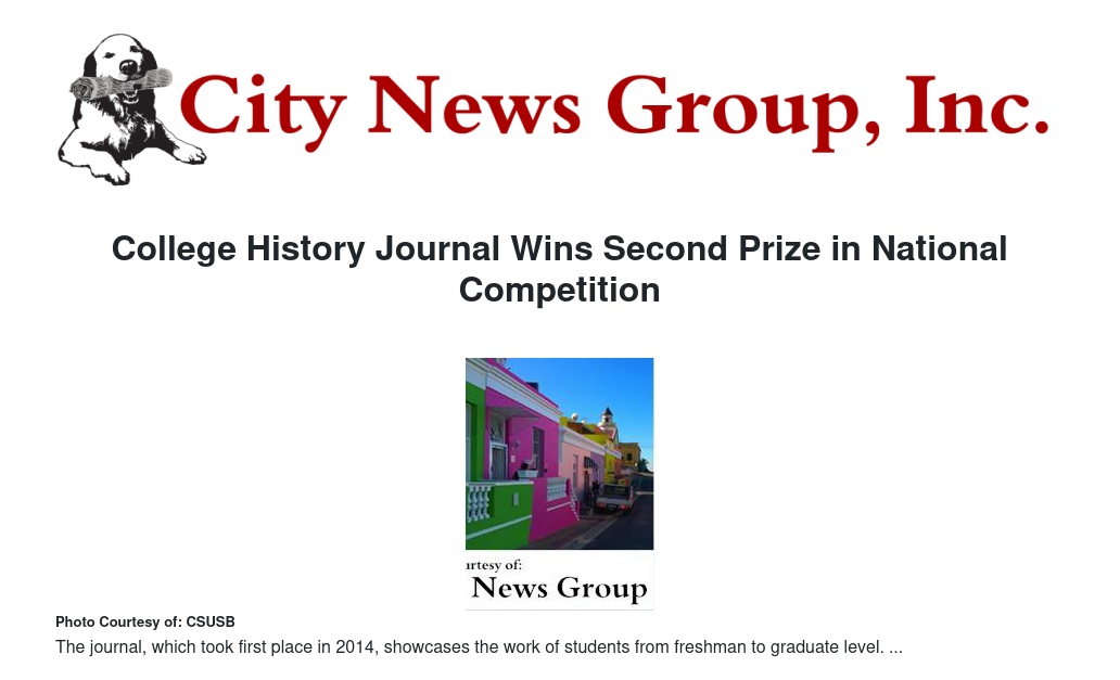 The Cal State San Bernardino History department’s student-run journal, “History in the Making, Volume 8,” has won the second place prize in the 2015 Gerald D. Nash History Journal Award.