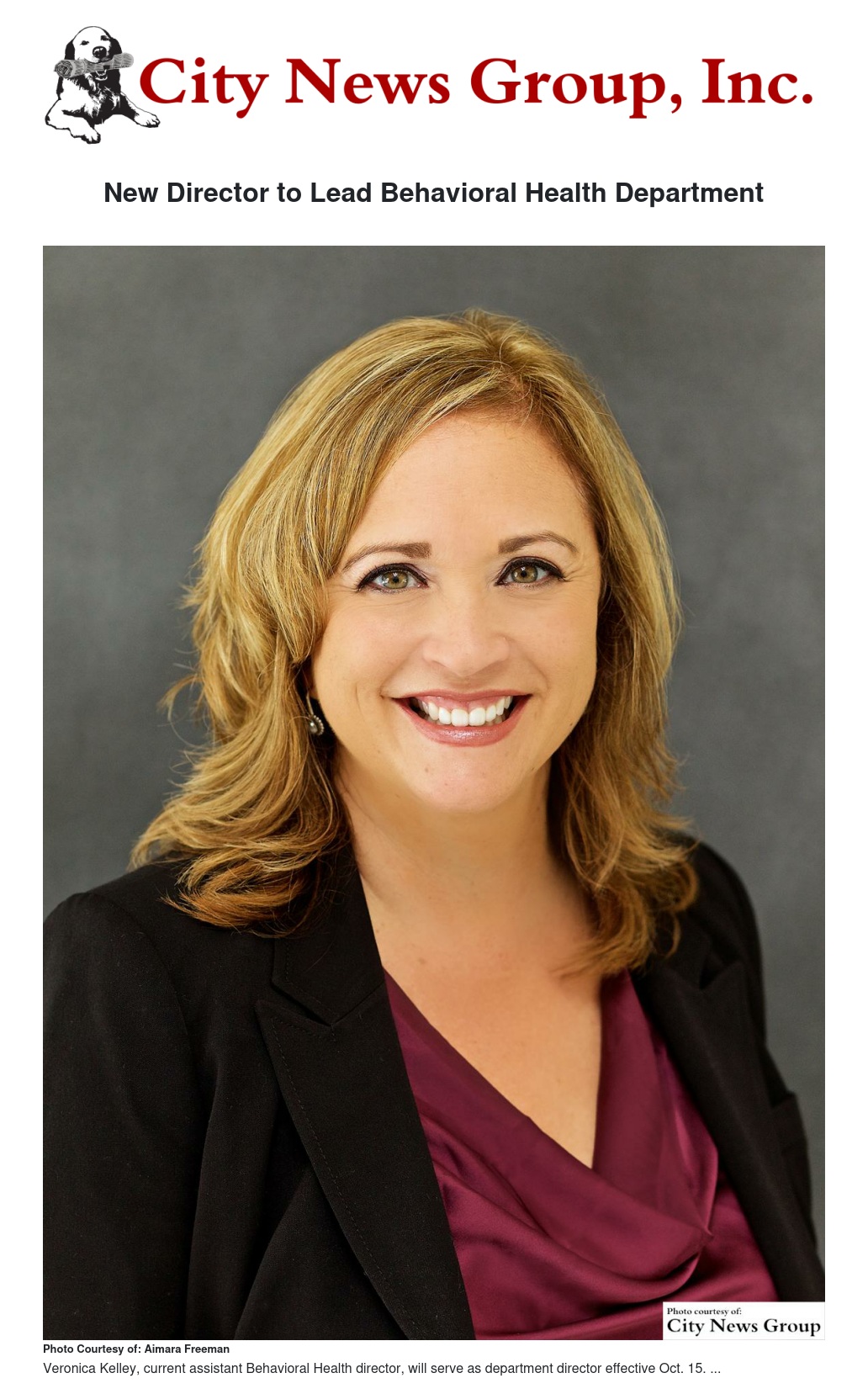 “It is with great excitement that I accept the position of director of Behavioral Health,” Kelley said. “In my position as assistant director, our mission of wellness, recovery and resilience is brought to life by the actions of our staff each and every day as they serve clients, fellow departments, community partners and the community at large. As director, I will continue our focus on this mission and provide high-quality behavioral health services through collaborative efforts, partnerships and transparency. I am proud and honored by the continued opportunity to serve.”