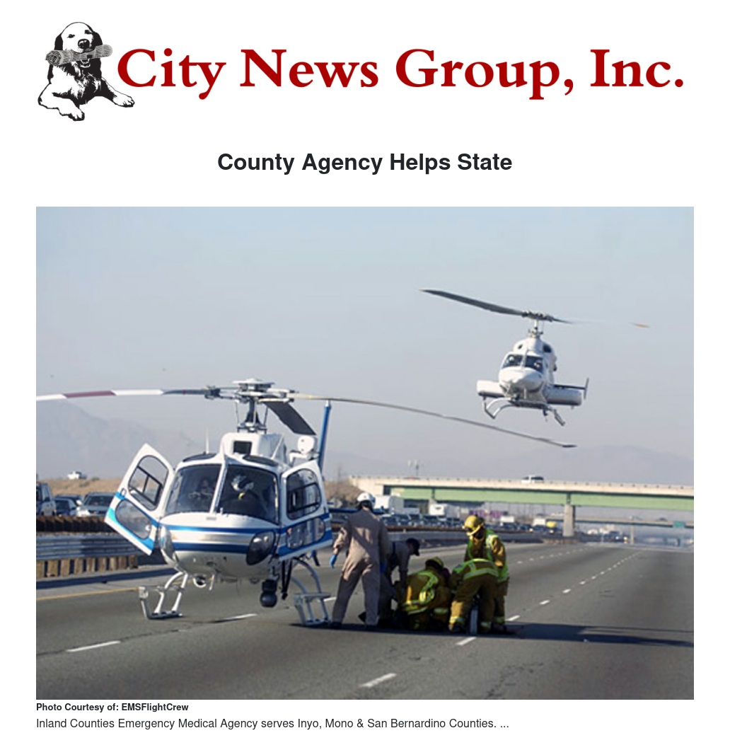 The Inland Counties Emergency Medical Agency (ICEMA), the local emergency medical services (EMS) agency for San Bernardino, Inyo and Mono Counties, was instrumental in helping the State of California become the first state to submit an improved version of prehospital emergency medical data to the federal National Emergency Medical Services Information System (NEMSIS).