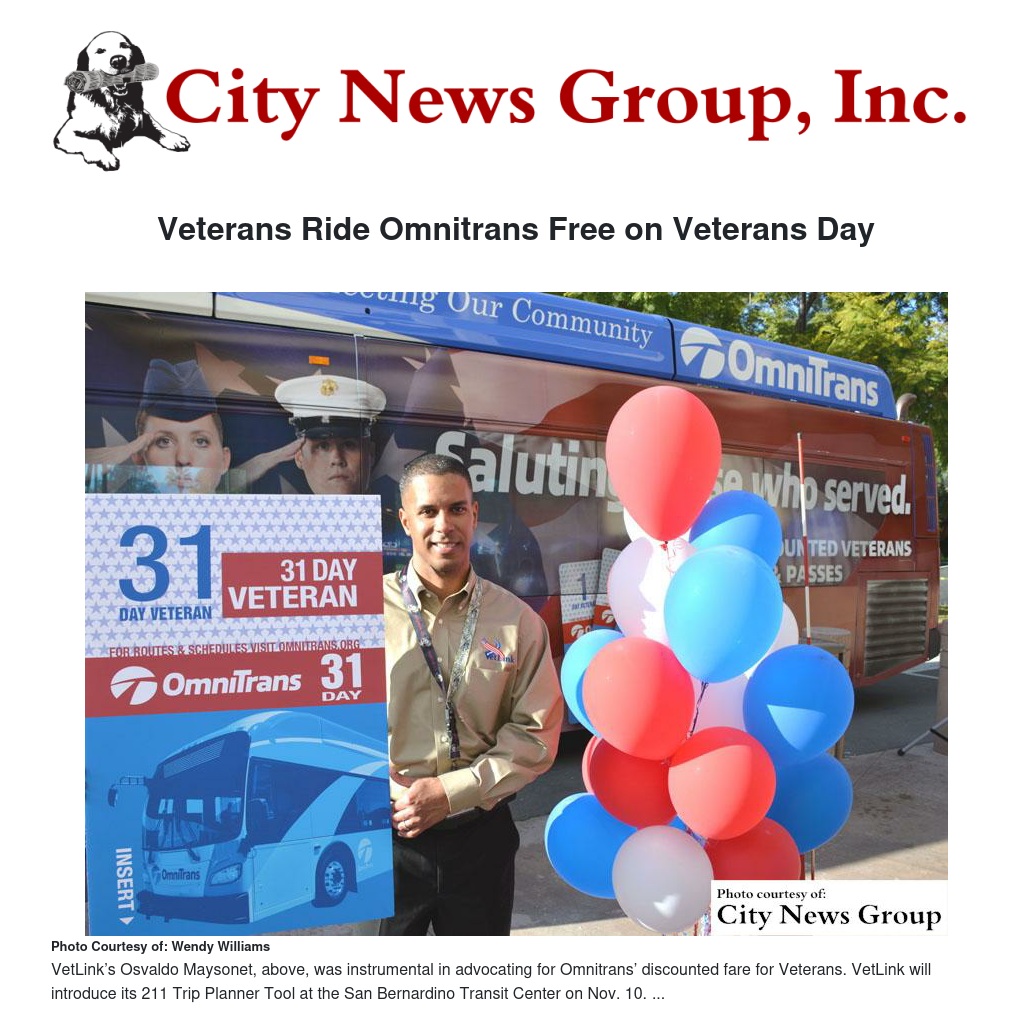 “Since then, we have tallied over 100,000 rides taken by local veterans,” said Omnitrans spokesperson Wendy Williams. Osvaldo Maysonet, 211 Access and Mobility Coordinator for VetLink was instrumental in advocating for the discounted veteran fare.