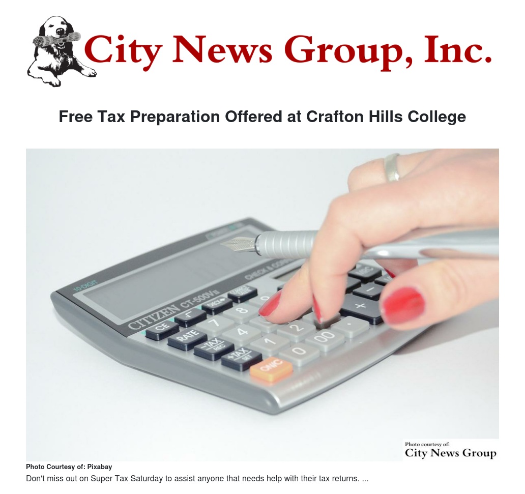 On Saturday, March 12, the college will host Super Tax Saturday. The special event is sponsored by the California State Board of Equalization and is the only such event being held in San Bernardino County. Additional volunteers will be on hand that day to assist taxpayers with their returns.