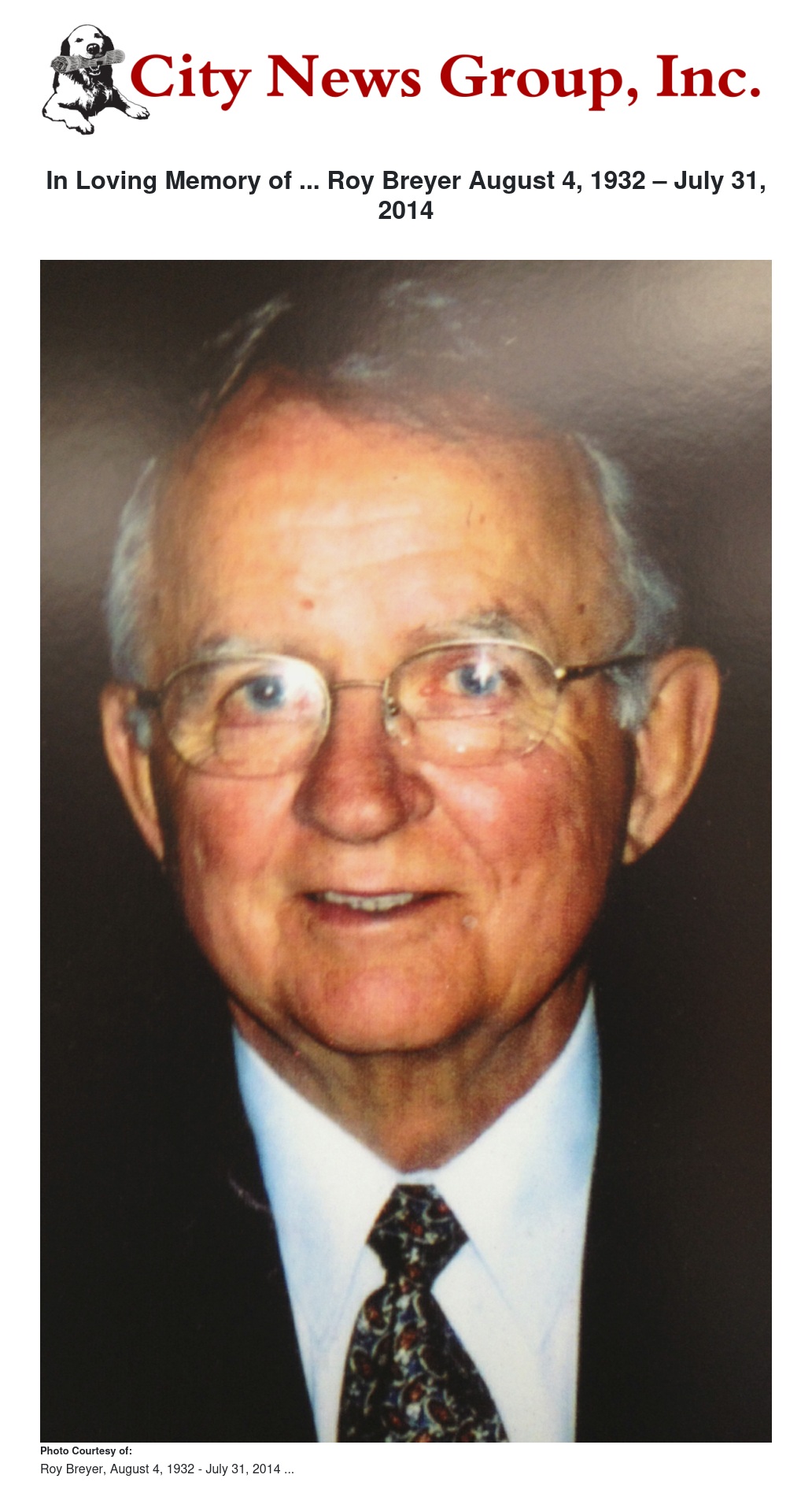 In Loving Memory of ... Roy Breyer August 4, 1932 – July 31, 2014