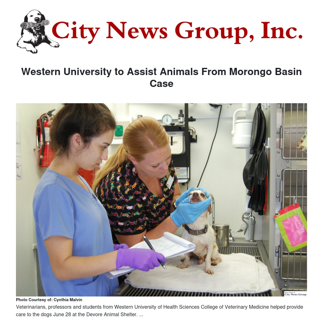 SAN BERNARDINO >> Veterinarians, professors and students from Western University of Health Sciences College of Veterinary Medicine were at the Devore Animal Shelter on Tuesday, June 28 to provide care to more than 60 dogs that were removed from a Morongo Basin animal sanctuary.