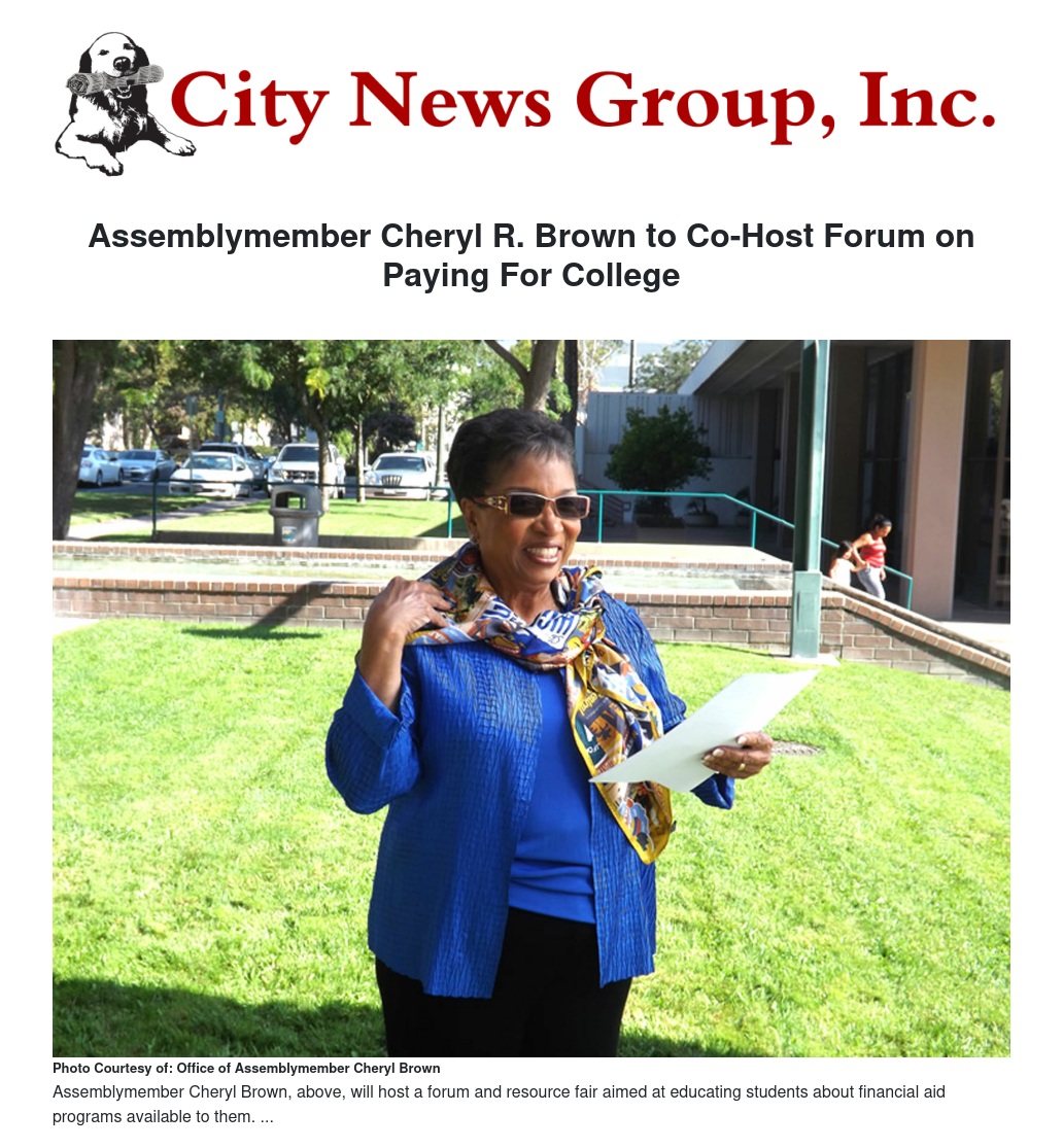 Assemblymember Cheryl R. Brown to Co-Host Forum on Paying For College