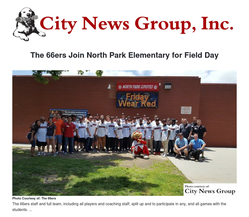 SAN BERNARDINO>> The Inland Empire 66ers organization, including staff and players, joined North Park Elementary School on May 26, 2017, in an abundance of outdoor activities for their annual end of the year Field Day event.