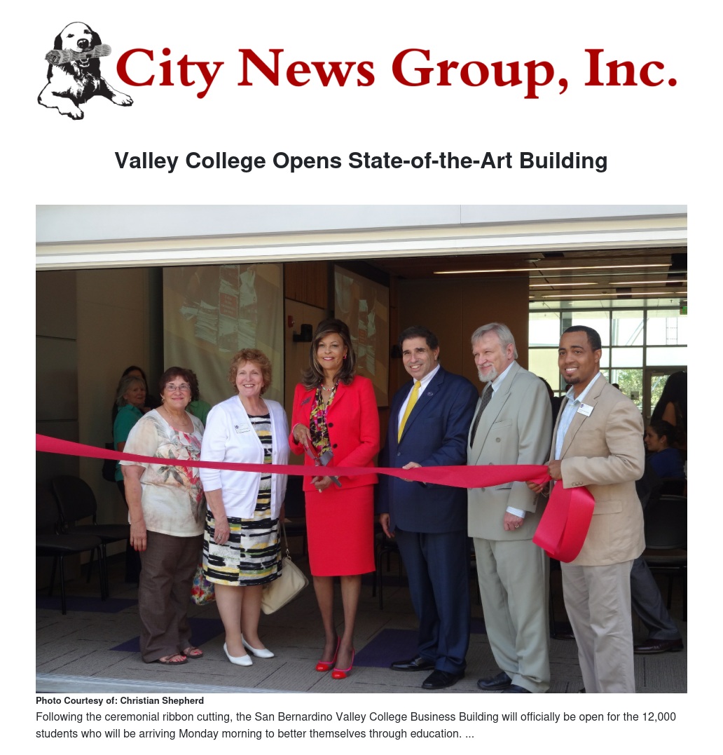 August 16 marked the Grand Reopening of San Bernardino Valley College’s (SBVC) Business Building just in time for the fall semester. Students attending Valley College will be able to take courses in the new state-of-the-art building equipped with technology and electronics, all geared toward a higher standard of education.