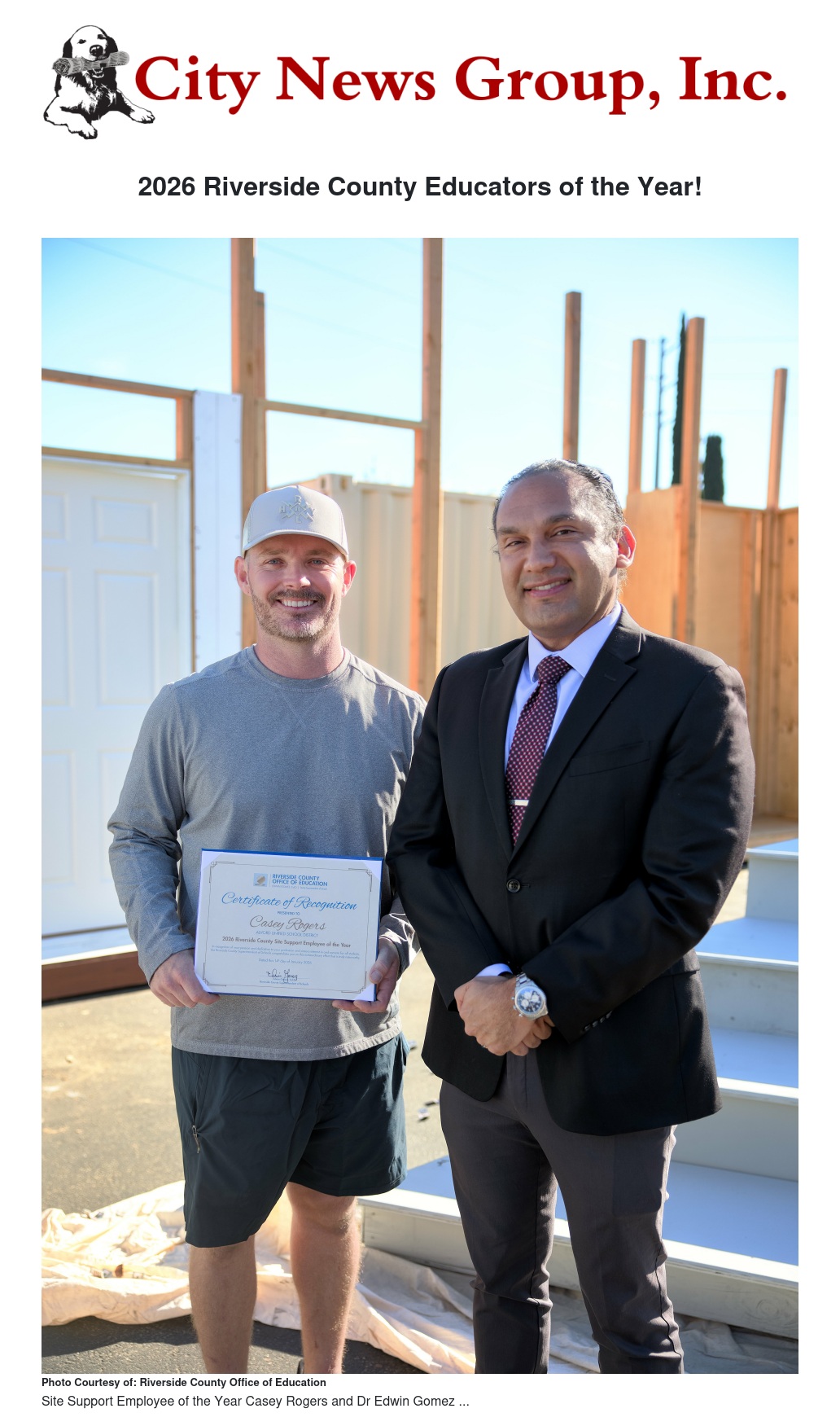 Along with the 2026 Riverside County Teachers of the Year named previously, all 2026 Riverside County Educators of the Year will be honored at the Celebrating Educators Luncheon, set for Wednesday, May 6, at the Riverside Convention Center.
