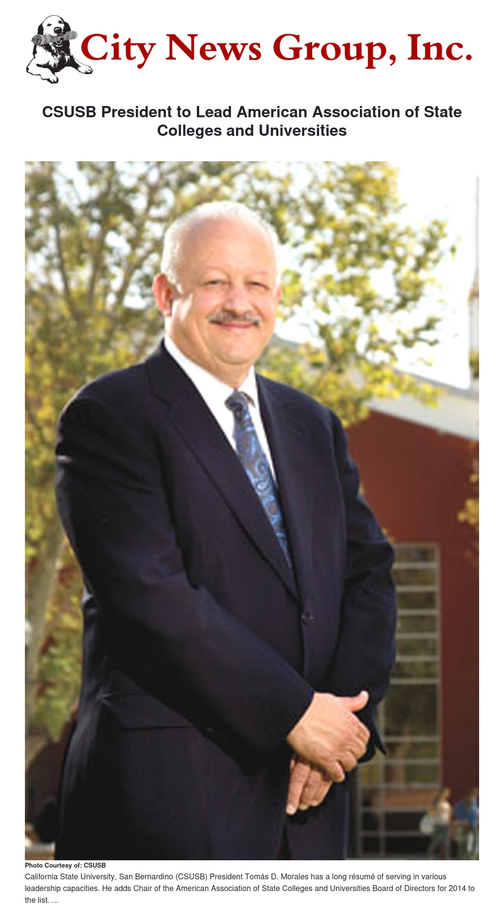 Tomás D. Morales, president of Cal State San Bernardino, has become the chair of the American Association of State Colleges and Universities Board of Directors for 2014.