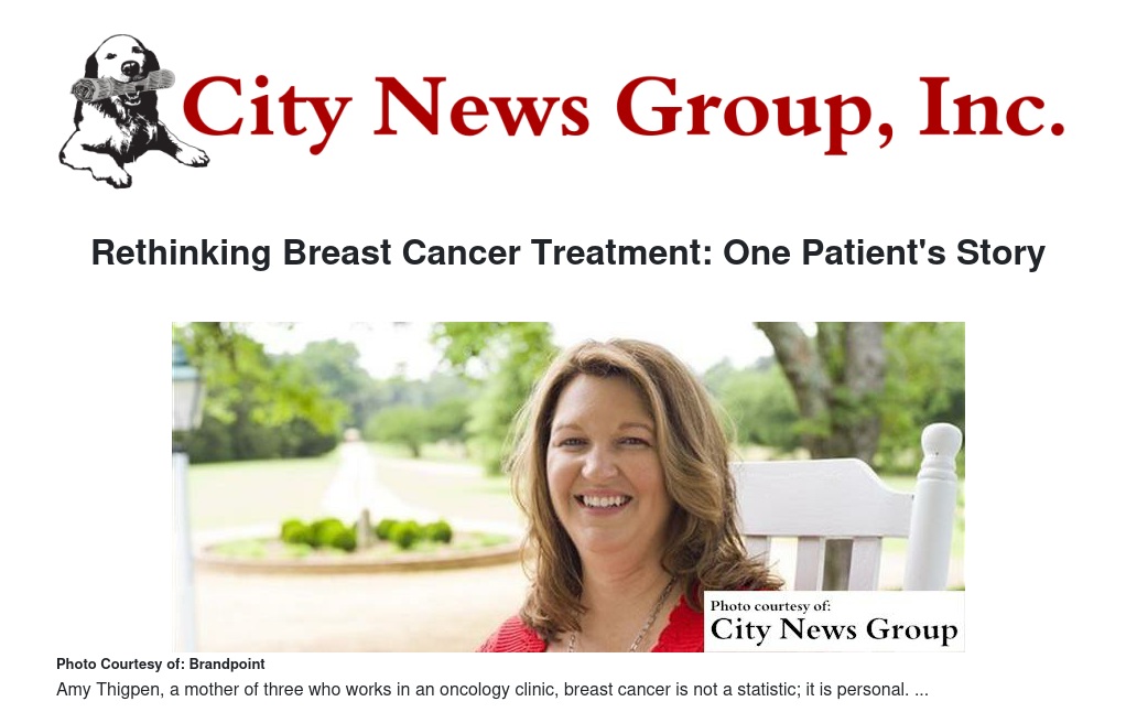 In the United States, one in five new breast cancer cases is stage 0 disease, but for Amy Thigpen, a mother of three who works in an oncology clinic, breast cancer is not a statistic; it is personal. After all, her mother is a breast cancer survivor, and later, she too faced-off with a similar diagnosis.