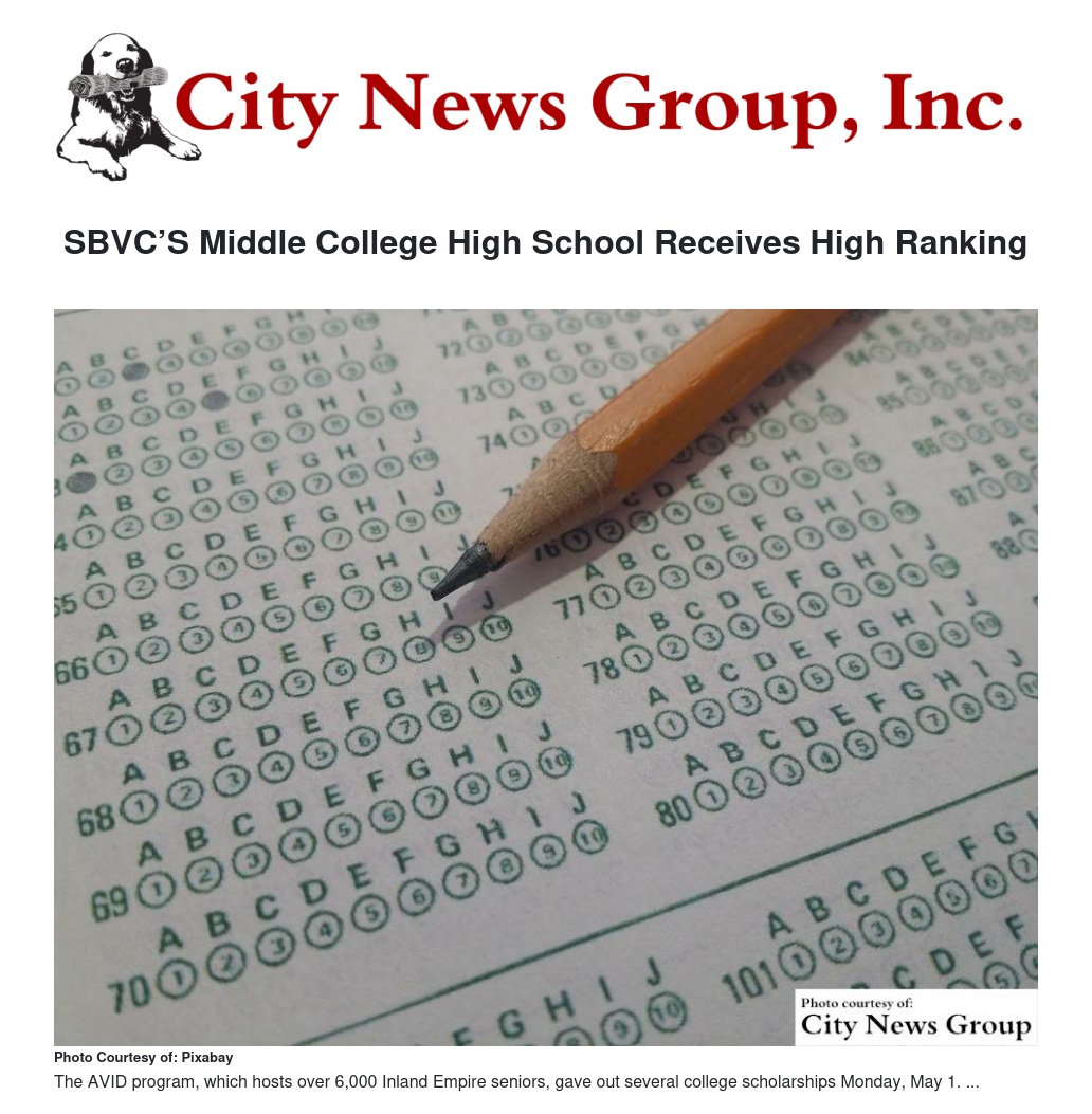 SBVC’S Middle College High School Receives High Ranking