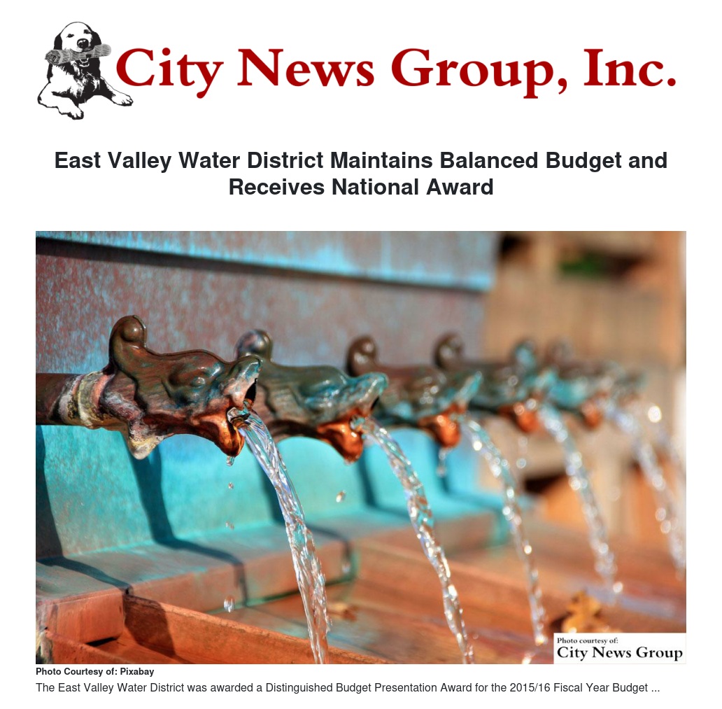 East Valley Water District Maintains Balanced Budget and Receives National Award