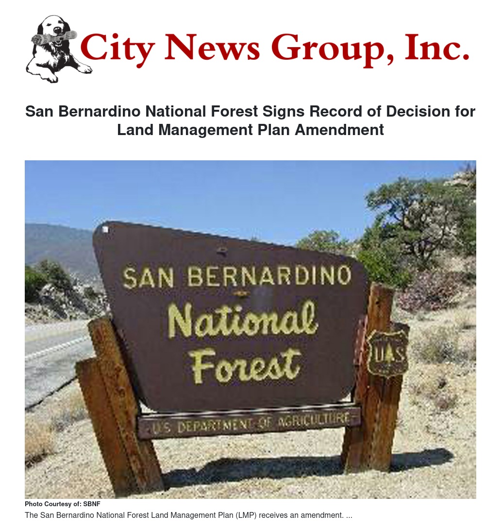 Forest Service officials announced the signing of the Record of Decision for the San Bernardino National Forest Land Management Plan (LMP) Amendment.