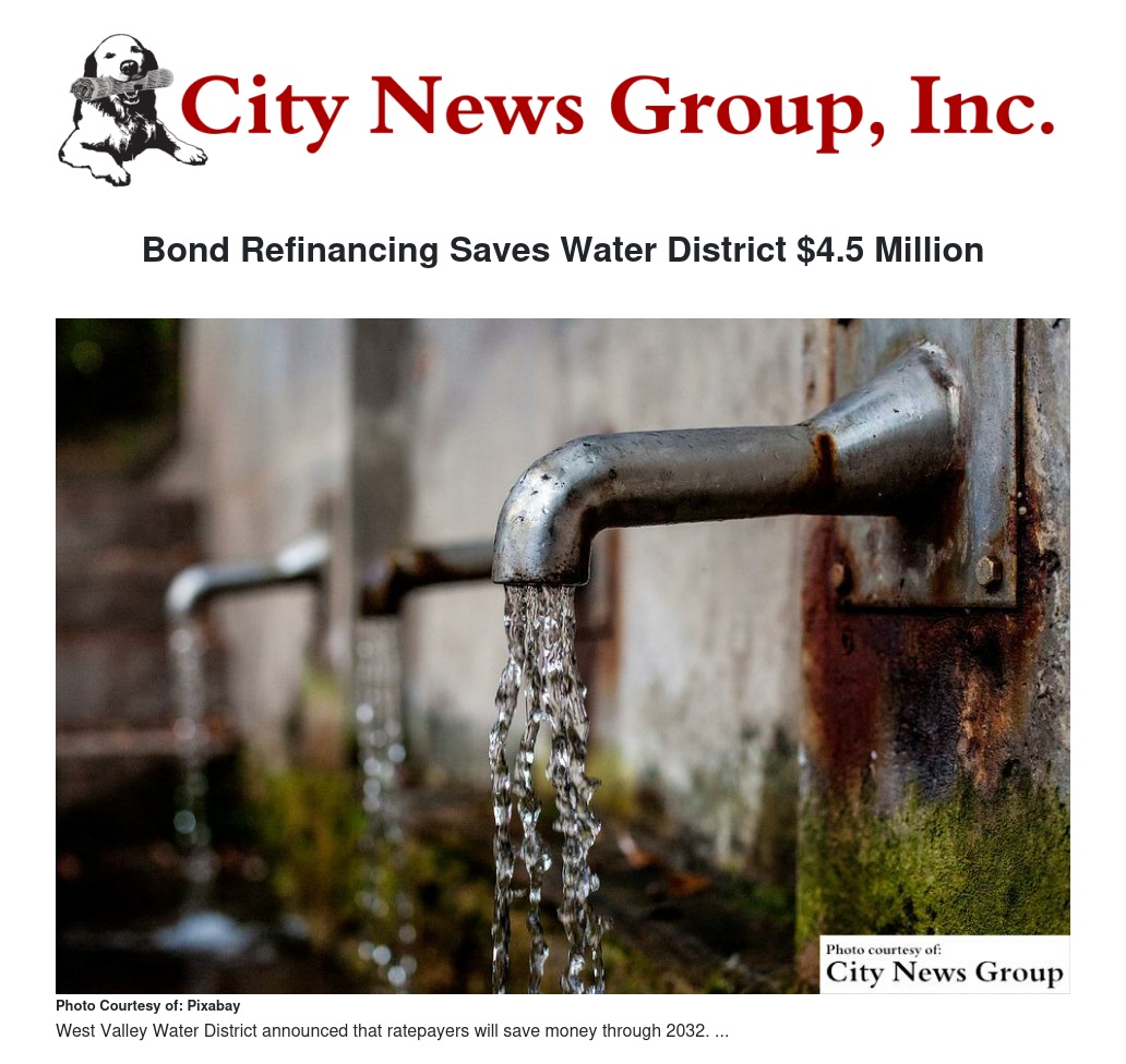 Bond Refinancing Saves Water District $4.5 Million