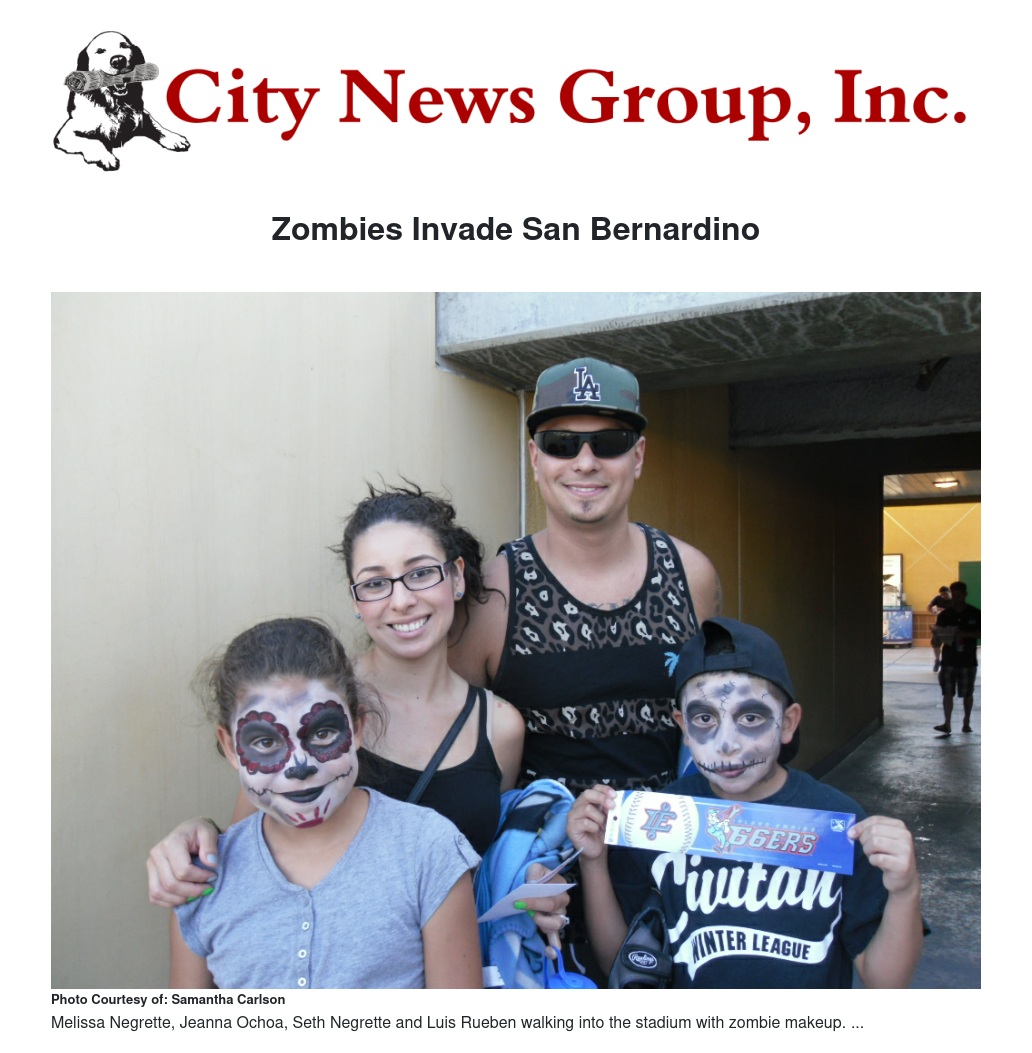 At the San Manuel Stadium in San Bernardino, zombies were mingling among the patrons during the 66ers baseball game on Thursday, June 12th. Baseball goers who came had the opportunity to donate blood to Lifestream who sponsored jerseys that were “zombiefied” during the game.