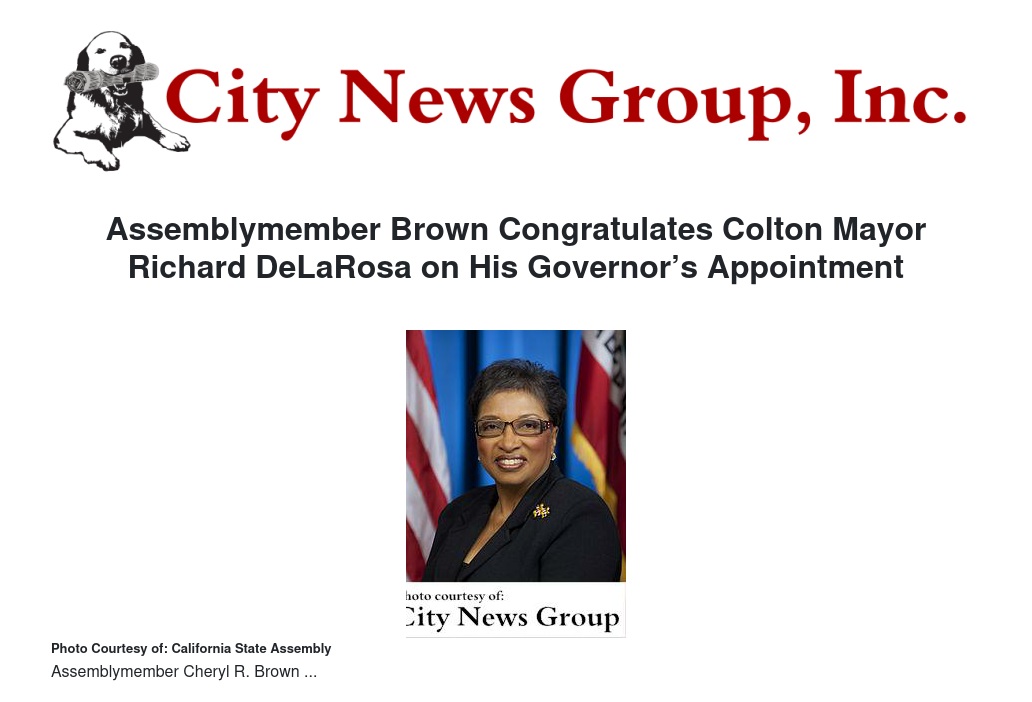 Assemblymember Brown Congratulates Colton Mayor Richard DeLaRosa on His Governor’s Appointment