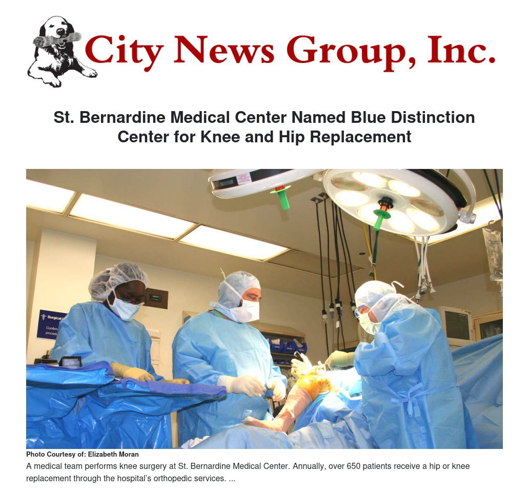 St. Bernardine Medical Center Named Blue Distinction Center for Knee and Hip Replacement