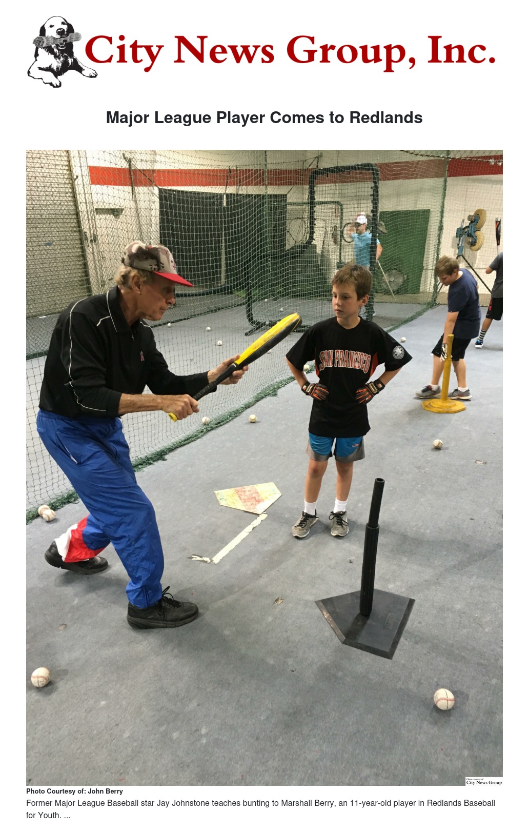 REDLANDS >> Former Major League Baseball star Jay Johnstone, a former outfielder and pinch-hitter for the Los Angeles Dodgers and Angeles, taught batting and bunting on May 3 to the 11 players on the Bronco-league Giants. Johnstone, 69, came to Redlands after meeting Giants manager John Berry at a baseball card signing event in Los Angeles earlier this year. Johnstone called Berry in April and said he was willing to come to Redlands to teach batting to his team. Johnstone signed baseball cards and autographs for all 11 players as well as a few of their family members who also play baseball.