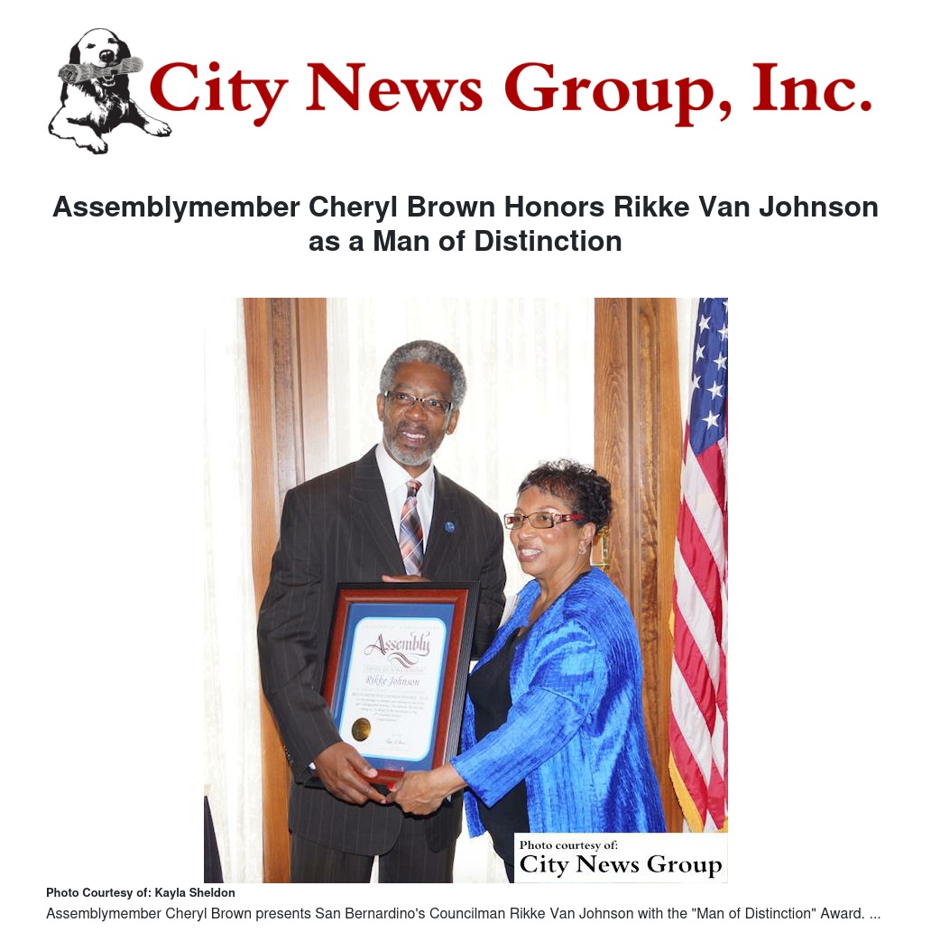 Assemblymember Cheryl Brown Honors Rikke Van Johnson as a Man of Distinction