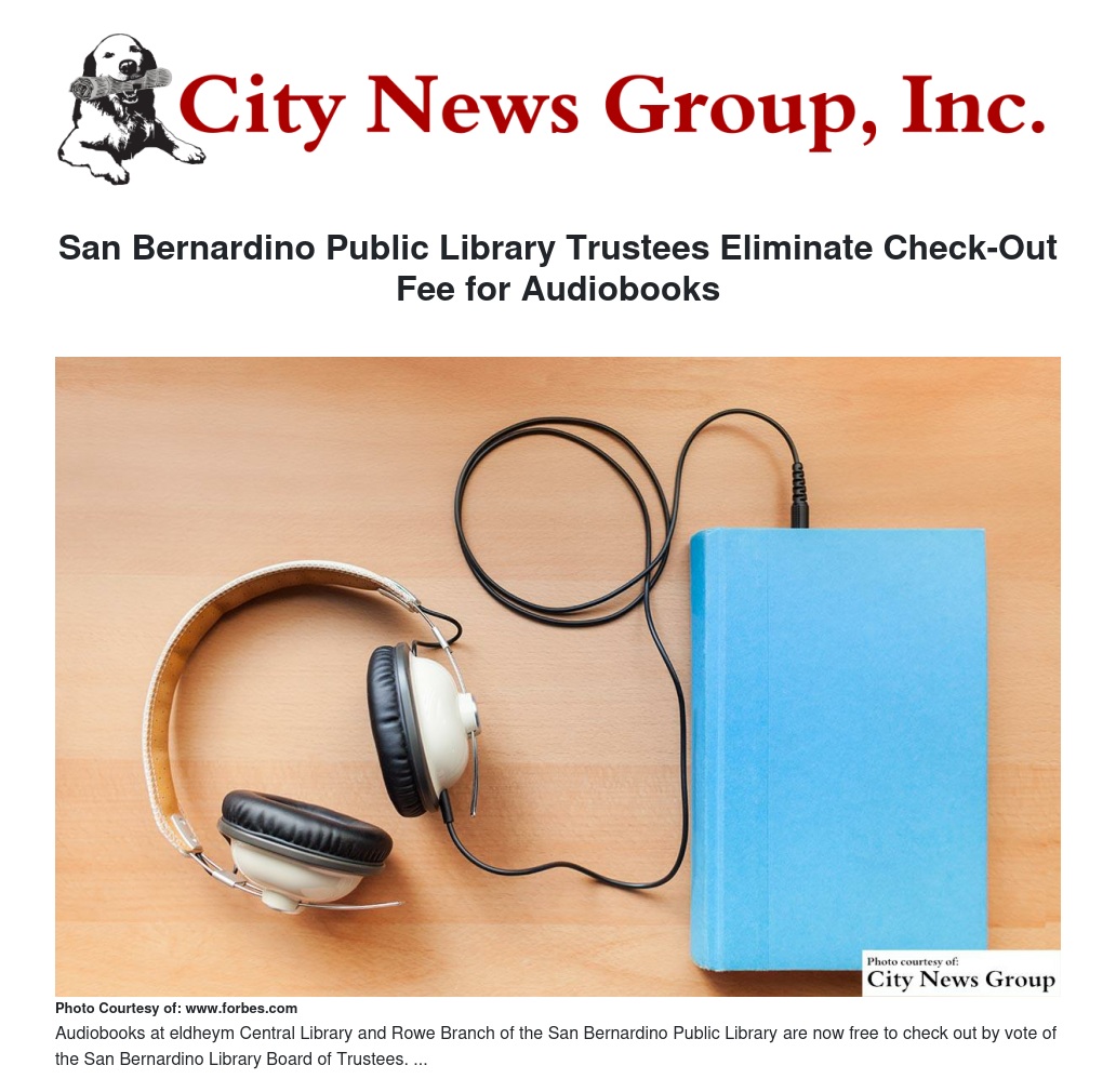 San Bernardino Public Library Trustees Eliminate Check-Out Fee for Audiobooks