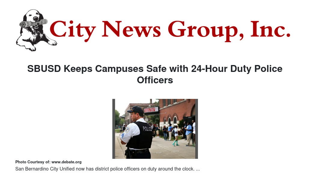 As of June 29, the San Bernardino City Unified School District has police officers on duty 24 hours a day to keep campuses safe and protect school property.