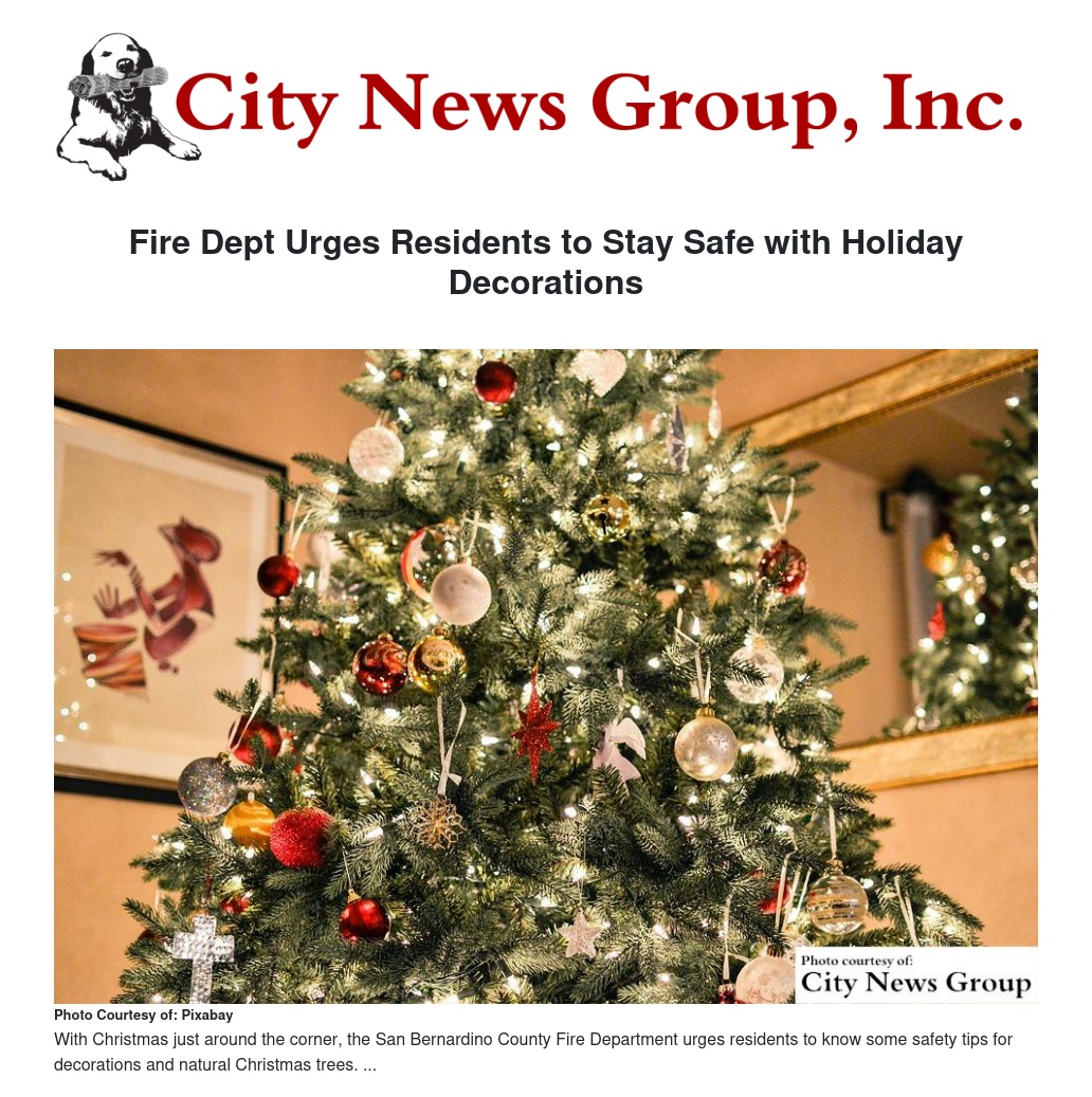 SAN BERNARDINO>> With the holiday season upon us, the San Bernardino County Fire Department reminds residents of the following holiday decorating and natural Christmas tree safety tips.
