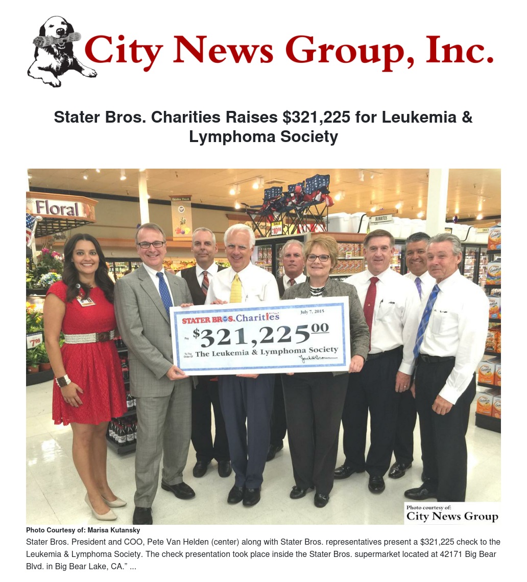 Stater Bros. Charities Raises $321,225 for Leukemia & Lymphoma Society