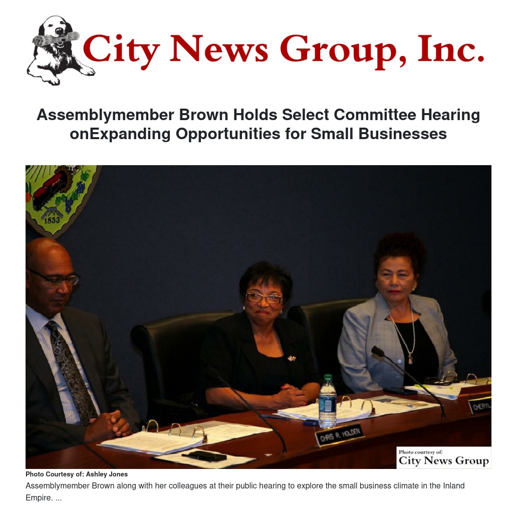 Assemblymember Cheryl R. Brown (D-San Bernardino), Chair of the Assembly Select Committee on Small Business in the Inland Empire, held a public hearing on Friday, Sept. 25, to explore the small business climate in the Inland Empire.