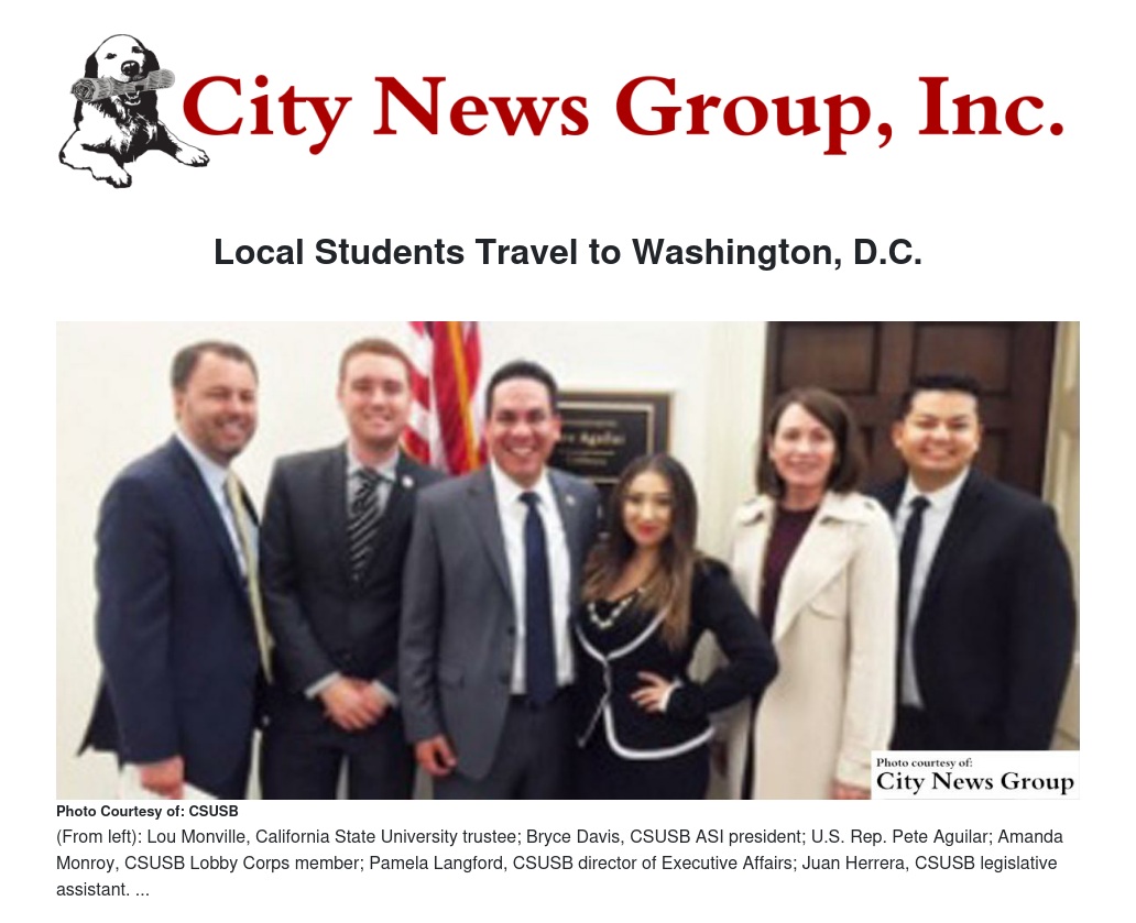 SAN BERNARDINO >> Focusing on key issues in higher education, two Cal State San Bernardino (CSUSB) students were among the many student representatives from the California State University (CSU) who visited federal officials in Washington D.C., as part of CSU Hill Day.