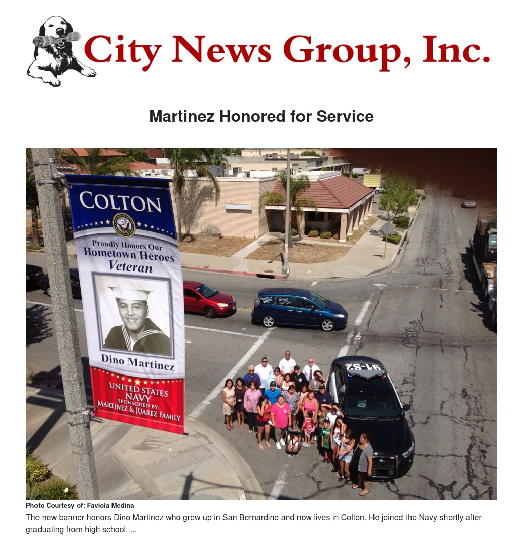 Before Martinez was honored with a banner he stated, “My wife and I talked 6 months to a year ago and I said, 'I would like to put a banner up for my brothers because it would be nice to do' and my brother, John Martinez lived in Colton. Time went by and my children a week before Father’s Day gave me this gift and said it was for Father's Day. When I opened it up, there was a picture of the banner in the bag. There were no words, there was too much emotion; I don’t get really emotional and that really surprised me. I’m pretty blessed I have a family that does that.”
