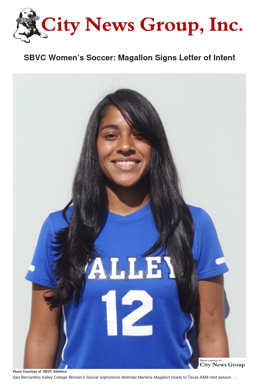 San Bernardino Valley College Women’s Soccer sophomore defender Marlene Magallon (Hesperia High School) has signed a letter of intent to play for Texas A&M University-Texarkana next season.