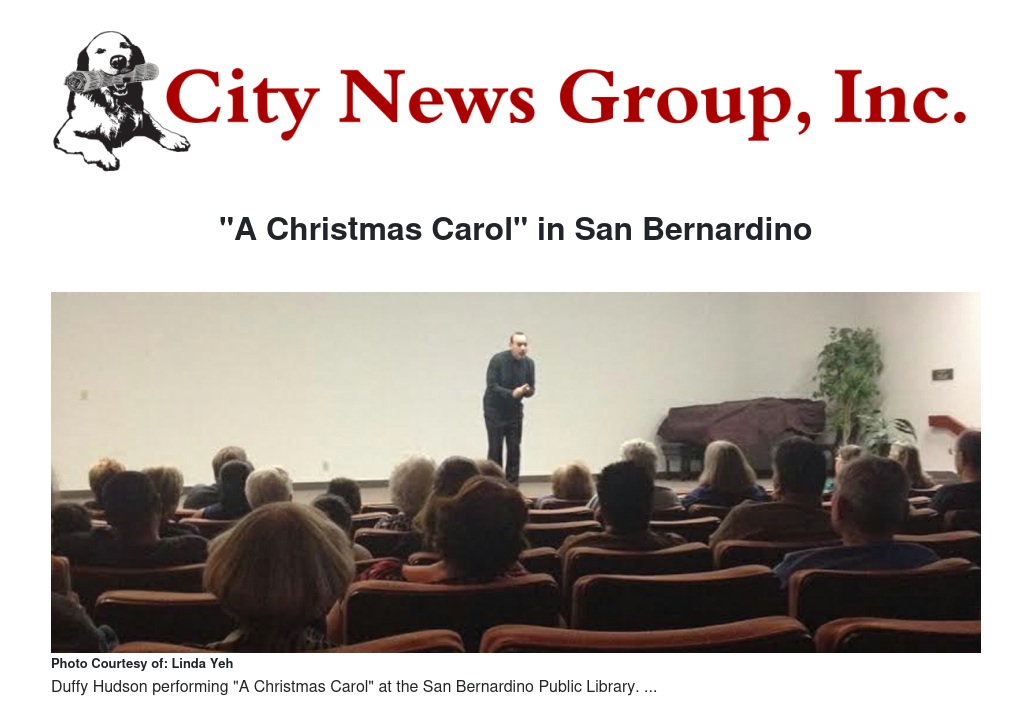 One-man show Duffy Hudson presented the classic "A Christmas Carol" at the San Bernardino Public Library on Saturday, Nov. 22.