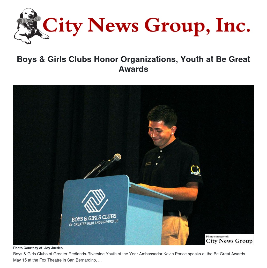 Boys & Girls Clubs of Greater Redlands-Riverside honored its Youth of the Year Ambassadors and community advocates for youth at its Be Great Awards at the historic Fox Theatre in San Bernardino May 15.