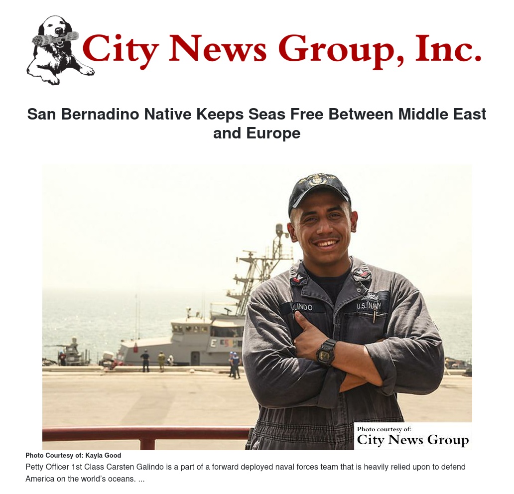 A 2006 Cajon High School graduate and San Bernardino native is helping the U.S. Navy keep sea lanes safe and open in the Middle East, serving on the mine countermeasures ship USS Devastator (MCM-6).