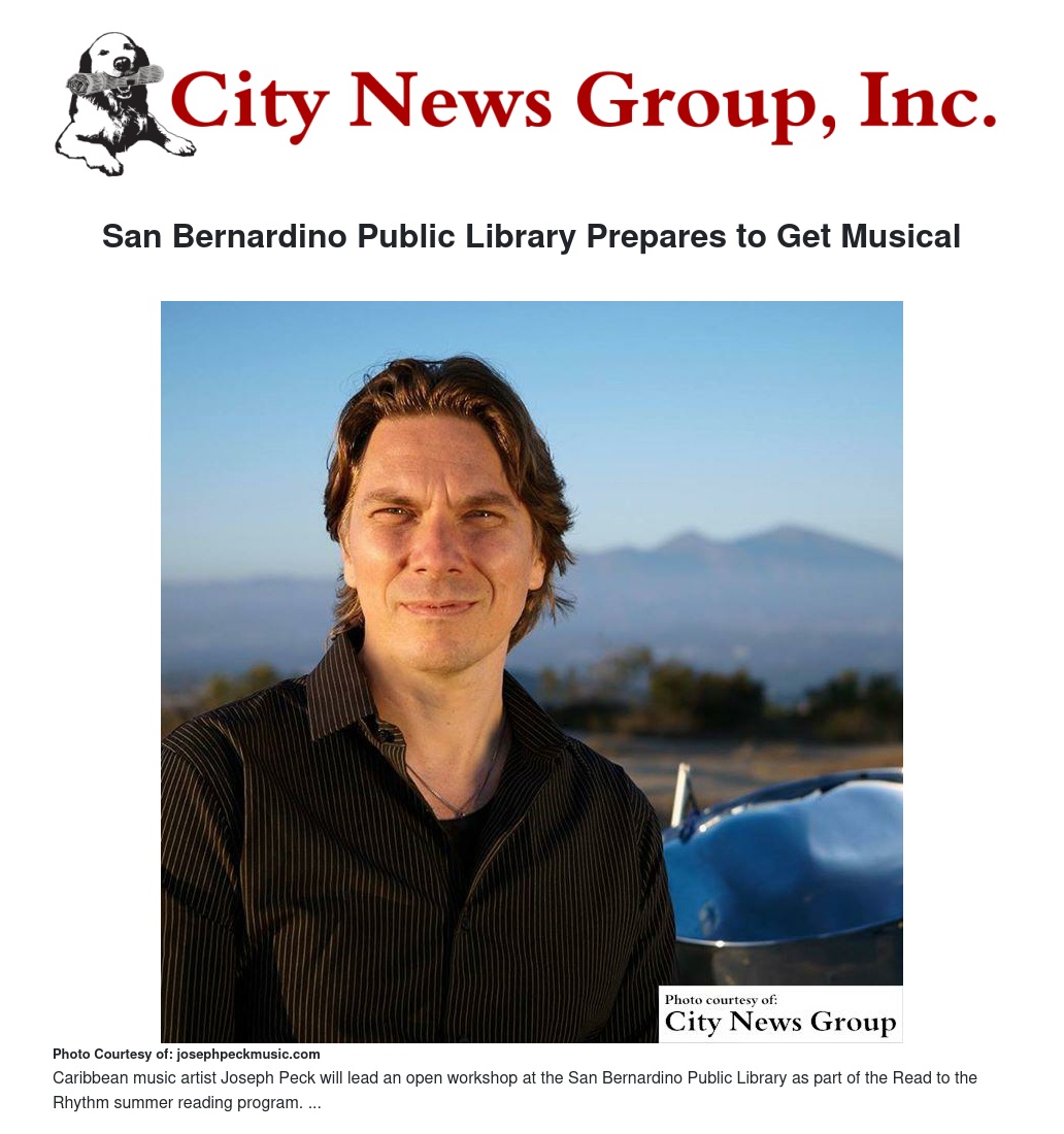 As part of the Summer Reading Game theme, Read to the Rhythm, the San Bernardino Public Library will host Joseph Peck and his music of the Caribbean. Peck will provide a general overview of the steelpan (steel drum) and its origin. He will perform on the steel drum and then attendees will have the opportunity to play a percussion instrument in a drum circle.