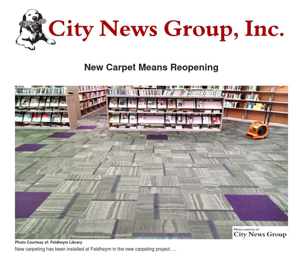 Feldehym Central Library celebrates its 30th anniversary this year and until this project retained its original carpeting. Almost all of the carpet in the 64,000-square-foot facility is to be replaced in this project, which was funded mostly by an insurance settlement following a 2013 flood and a Community Development Block Grant (CDBG).