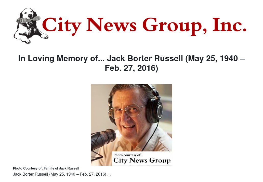 In Loving Memory of... Jack Borter Russell (May 25, 1940 – Feb. 27, 2016)