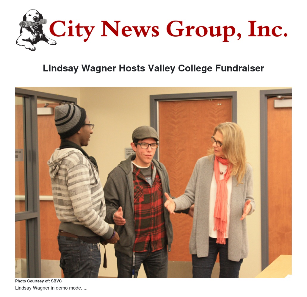 On Friday, April 25th, from 7 to 10 p.m. actress Lindsay Wagner will host a scholarship fundraiser at San Bernardino Valley College. The Emmy-award winner has been teaching acting in the college’s Radio, Television and Film (RTF) program for the past year and has taken an interest in helping out wherever she can.