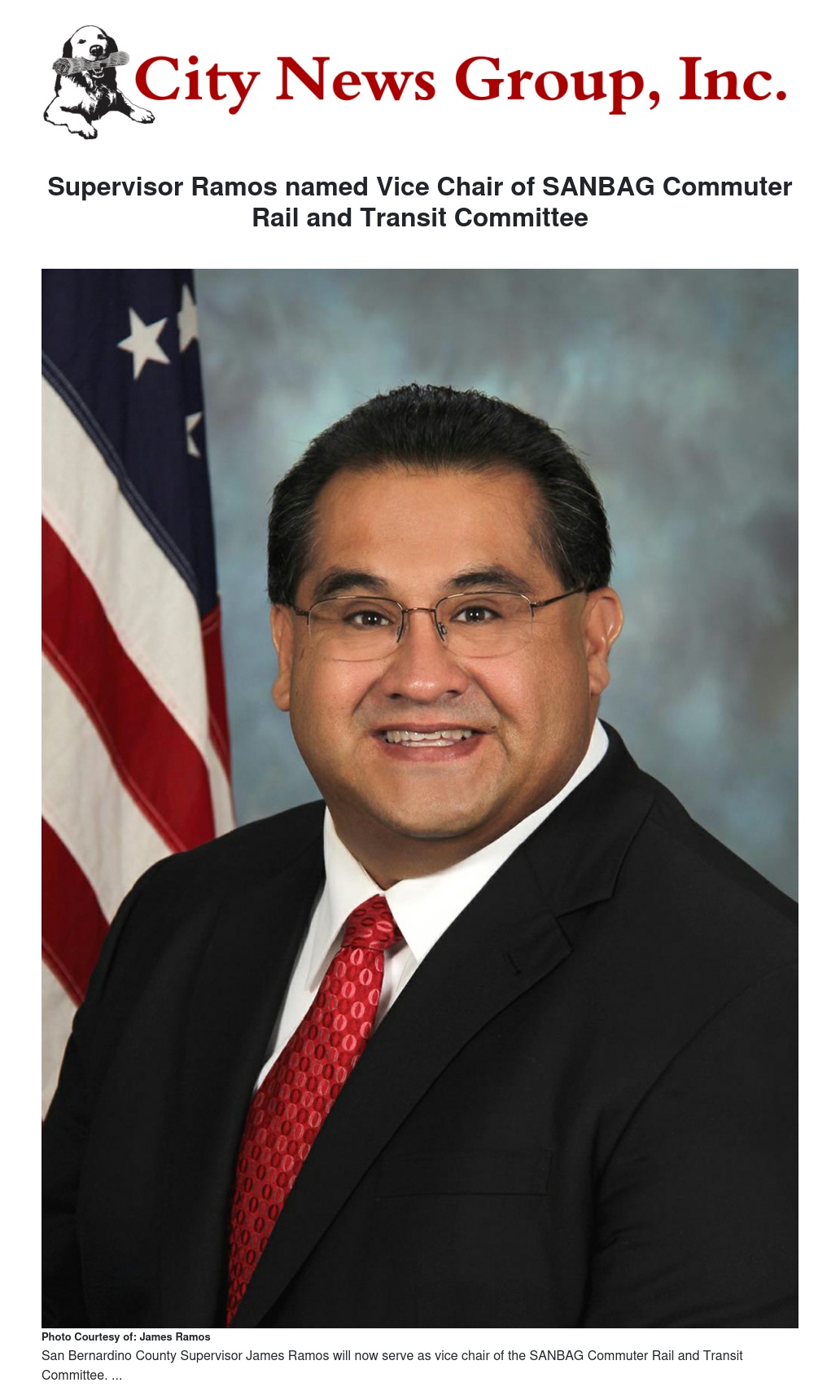 On Jan. 16, San Bernardino County Supervisor James Ramos was unanimously elected vice chair of the SANBAG Commuter Rail and Transit Committee during its monthly meeting.
