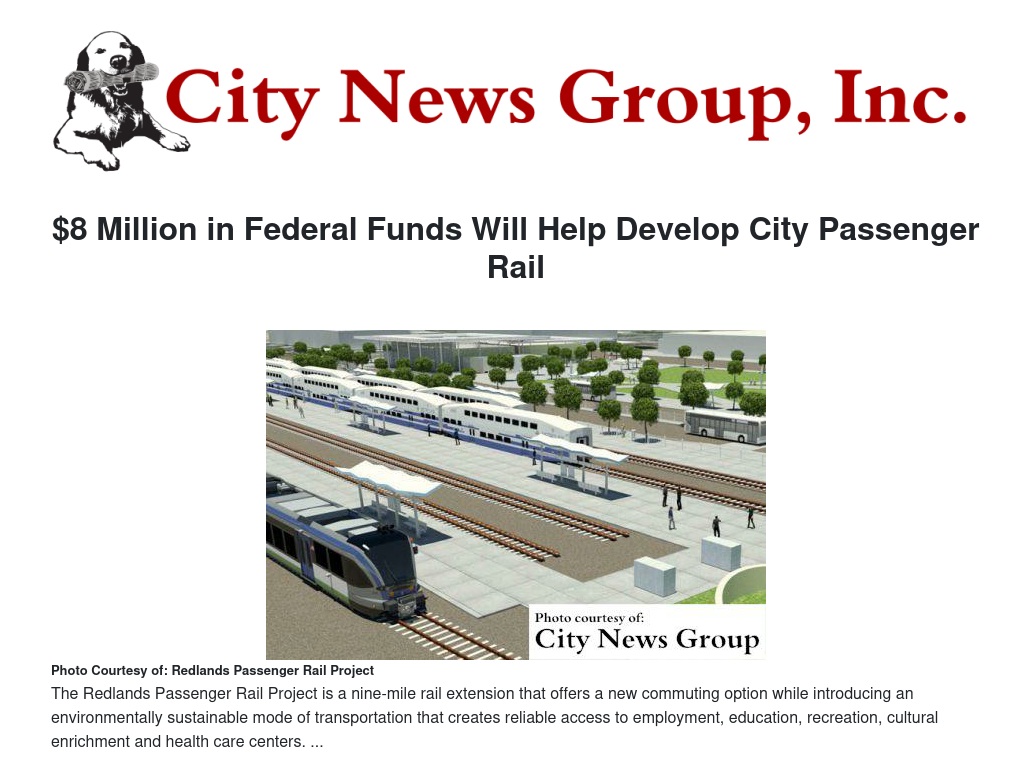 Redlands Mayor Paul Foster said the news is exciting for the rail project and for the City of Redlands.