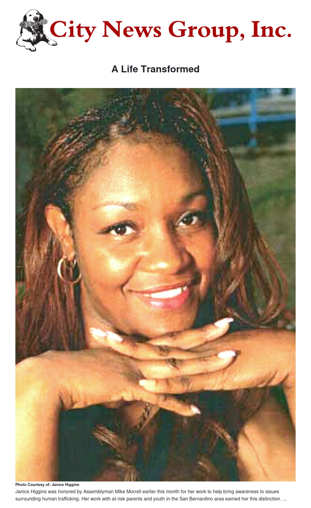 Project RAGE, Inc. CEO Janice Higgins on May 16 was honored as a Woman of Distinction by 40th District Assemblymember Mike Morrell (R-Rancho Cucamonga), where she was recognized for her community service through her work with at-risk youth and parents in the San Bernardino area, and for her work in calling attention to human trafficking.