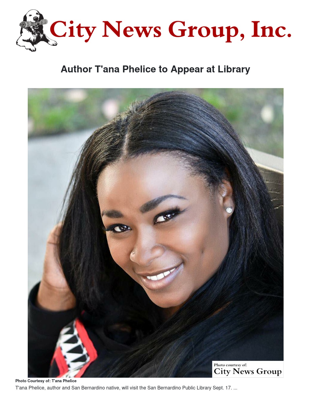 SAN BERNARDINO>> Author T’ana Phelice will be coming to the San Bernardino Public Library to discuss her books and present workshops Sept. 17.