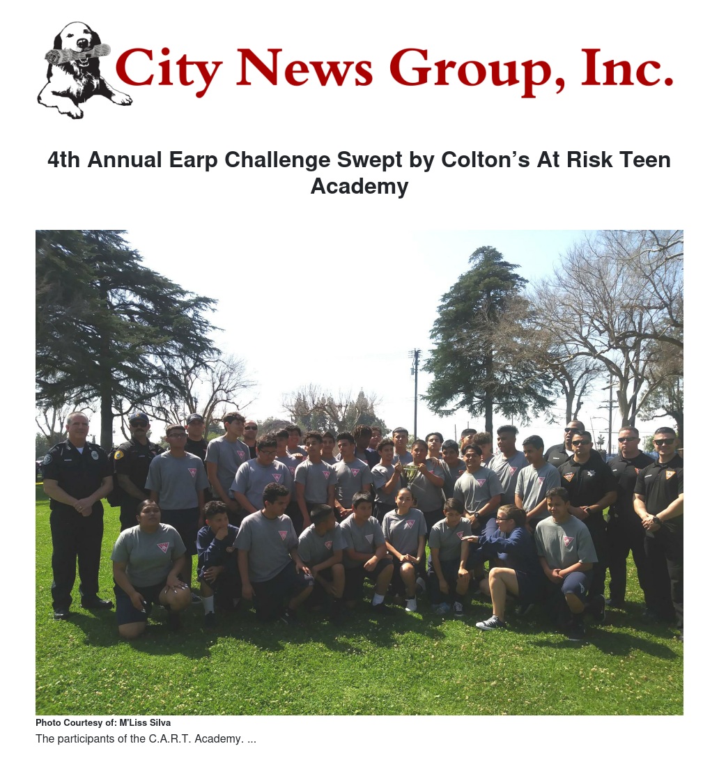 On a beautiful, sunny day at Rialto’s Margaret Todd Park, crosstown city rivals from both Rialto and Colton PD’s at-risk-youth programs came together to participate in a friendly competition. City dignitaries and family members gathered as well to witness the excitement. Saturday, April 7th, marked the return of the 4th annual Earp Challenge. Rialto Pride Platoon played host to Colton’s At Risk Teen Academy. After a series of stamina-testing physical activities, including a team sled-dragging relay and a team tug o’ war, C.A.R.T. walked away with the win. “It’s very competitive, it’s teamwork and it brings kids together, which is very important,“ comments Colton City Council Member Isaac Suchil, who was in attendance. Also present were Colton City Manager Bill Smith and Colton High School Principal Joda Murphy.