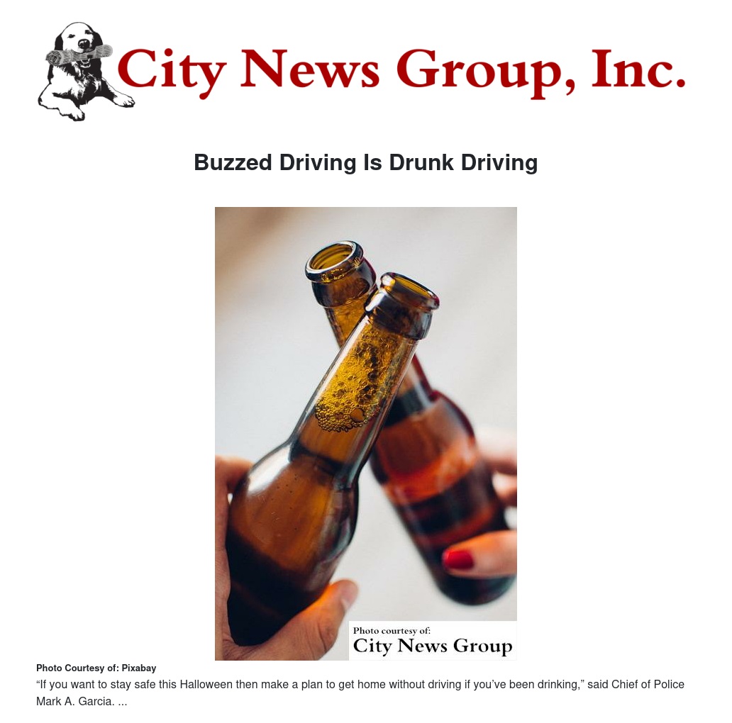 “If you want to stay safe this Halloween then make a plan to get home without driving if you’ve been drinking,” said Chief of Police Mark A. Garcia. “Even one drink impairs judgment, so plan to get home by taxi, ride share, mass transit or designate a sober driver. Buzzed driving is drunk driving, so think ahead to stay safe.”
