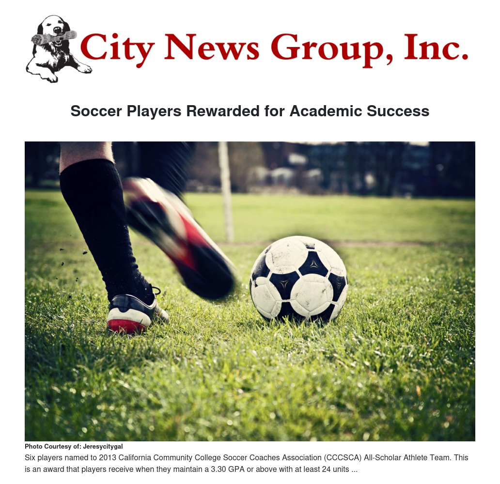 Six players named to 2013 California Community College Soccer Coaches Association (CCCSCA) all-Scholar Athlete Team. This is an award that players receive when they maintain a 3.30 GPA or above with at least 24 units.