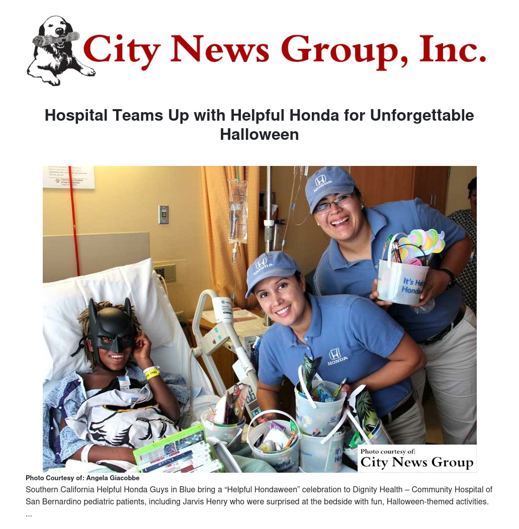 Community Hospital of San Bernardino welcomed the Southern California Helpful Honda Guys in Blue to surprise the hospital’s smallest patients with a “Helpful Hondaween” event, including Halloween-themed arts and crafts, costumes and decorations.