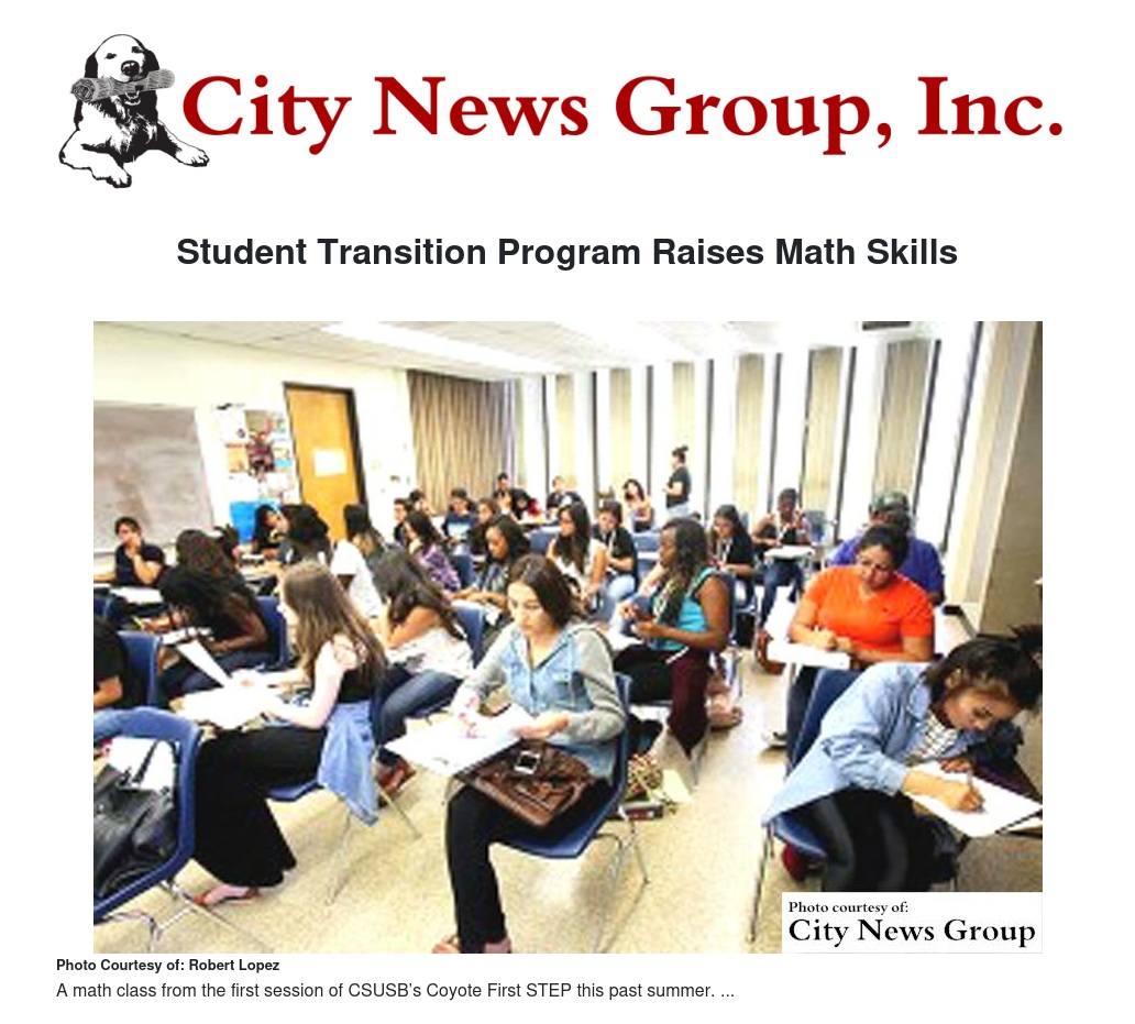 One goal of Coyote First STEP was to help more incoming freshmen start their first fall term ready for college mathematics, assisting not only the students, but CSUSB and the California State University meet targets for increasing graduation rates and decreasing achievement gaps.