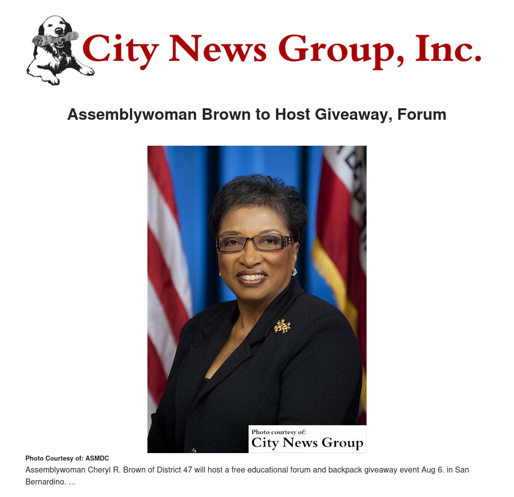 Assemblywoman Cheryl R. Brown of District 47 will host the free event and will feature discussions by Brown focusing on the legislature's accomplishments this year in education. Representatives from local educational agencies will also be present to speak about resources available to ensure students receive a quality education.